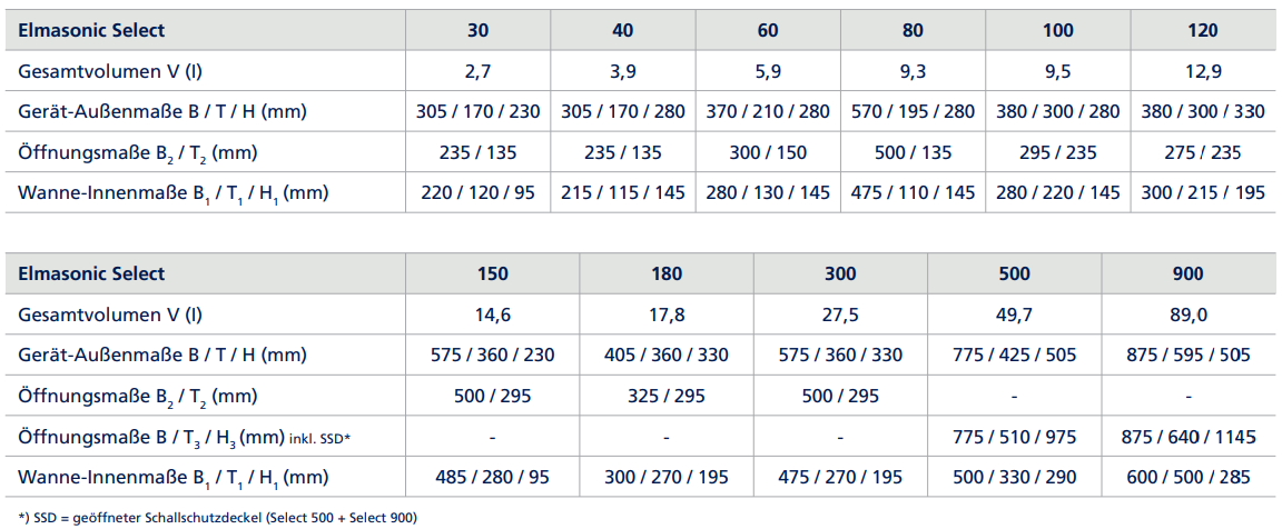 Die leistungsstarken und vielseitig einsetzbaren Elmasonic Select Ultraschallreinigungsgeräte sind mit einer Frequenz von 37 kHz, 5 Ultraschallmodi und der Möglichkeit bis zu 4 Reinigungsprogramme zu speichern ausgestattet. Eine erhöhte Trockenlaufsicherheit durch trockenlaufsichere Füllstandssteuerung, d.h. das Gerät kann erst gar nicht eingeschaltet werden, wenn nicht genügend Wasser in der Wanne ist.
