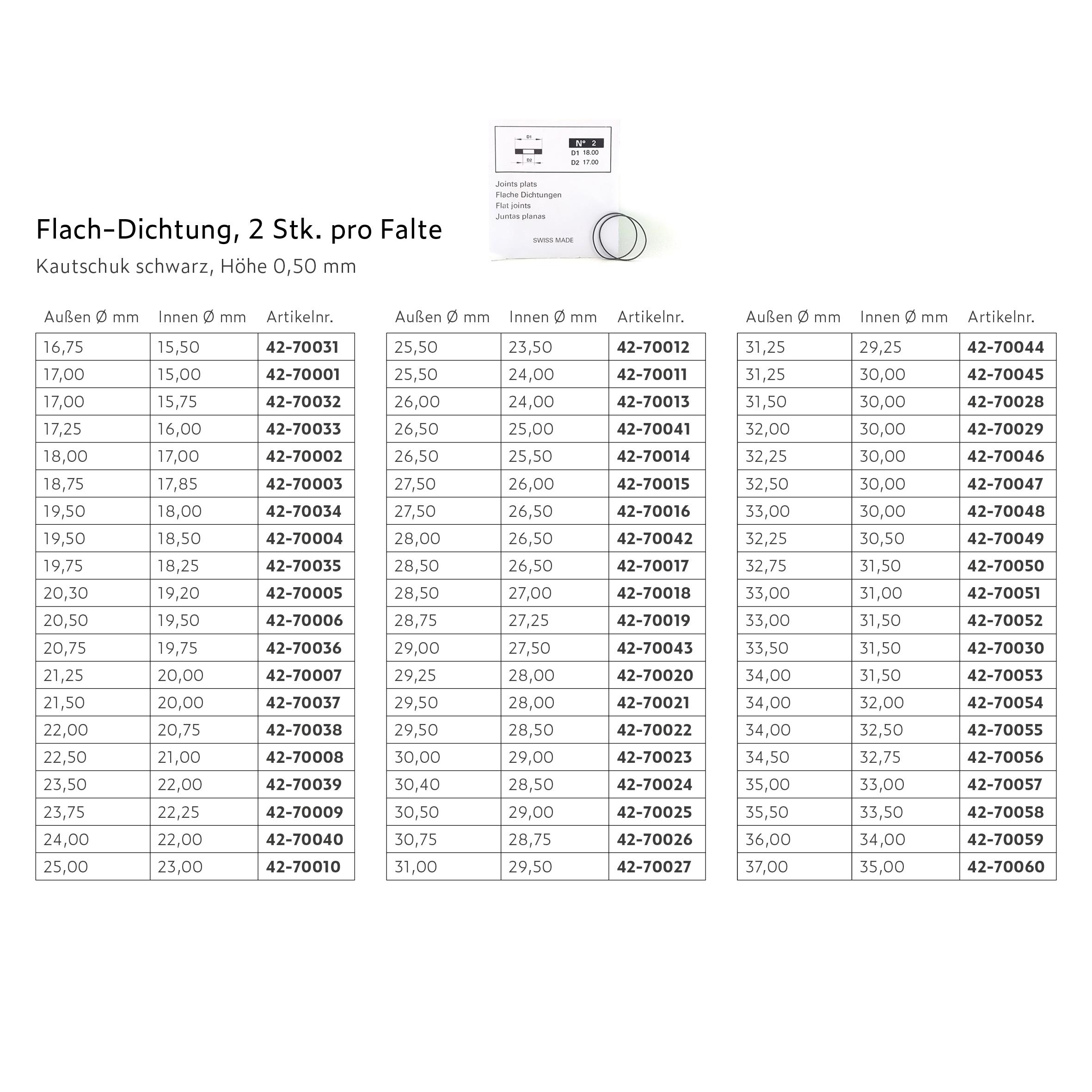 Flach-Dichtung, Kautschuk schwarz, 2 Stk. pro Falte